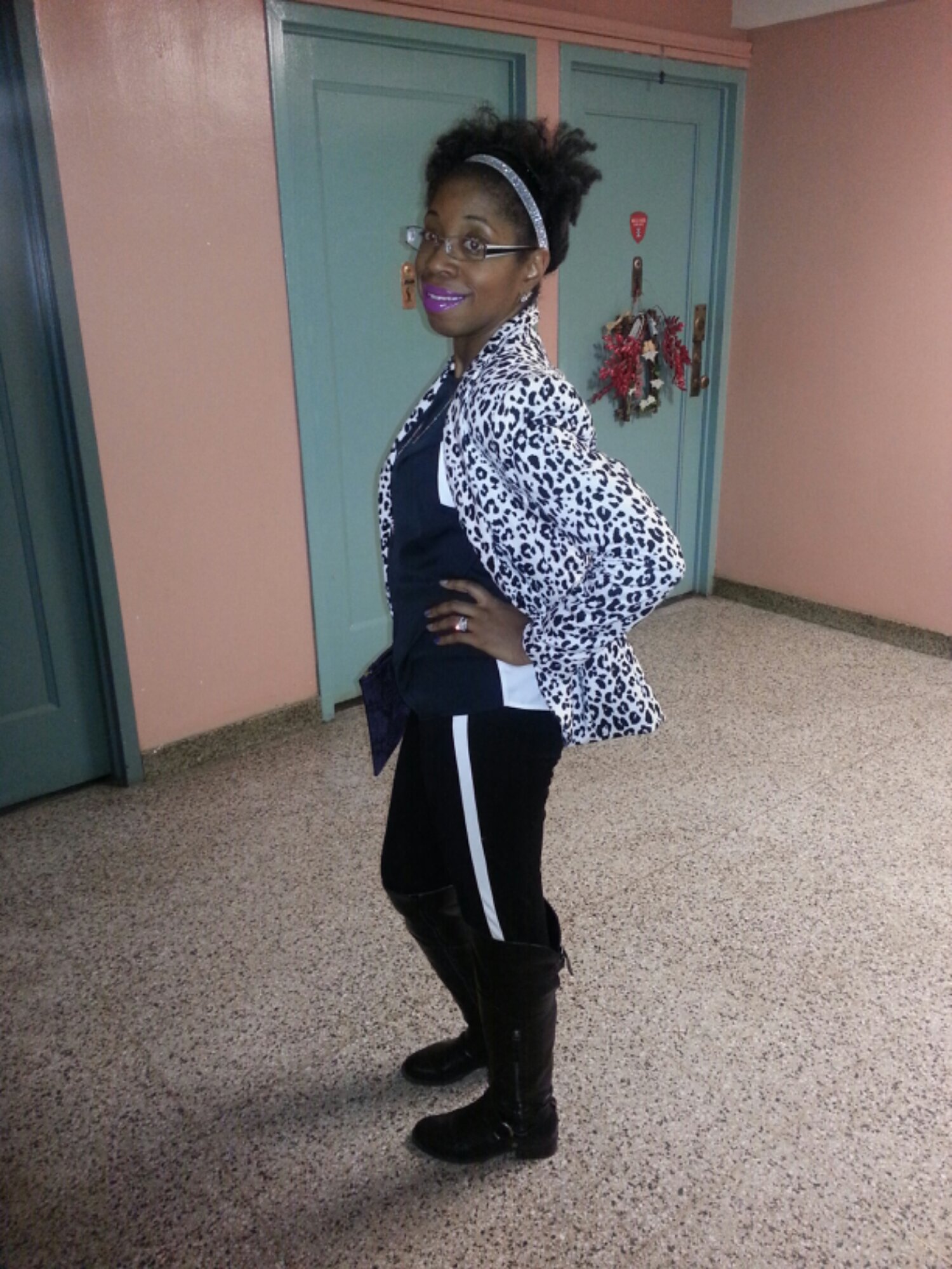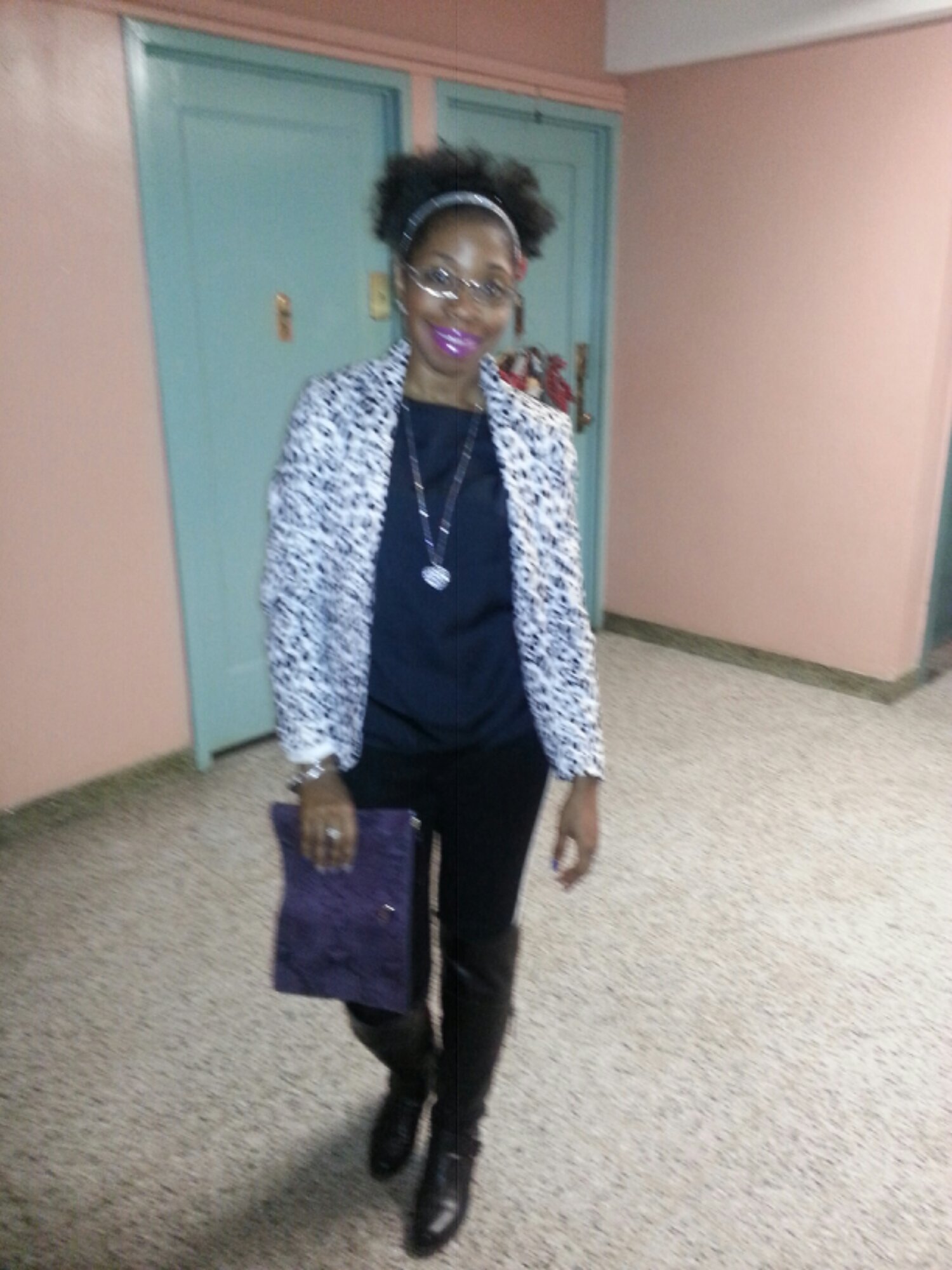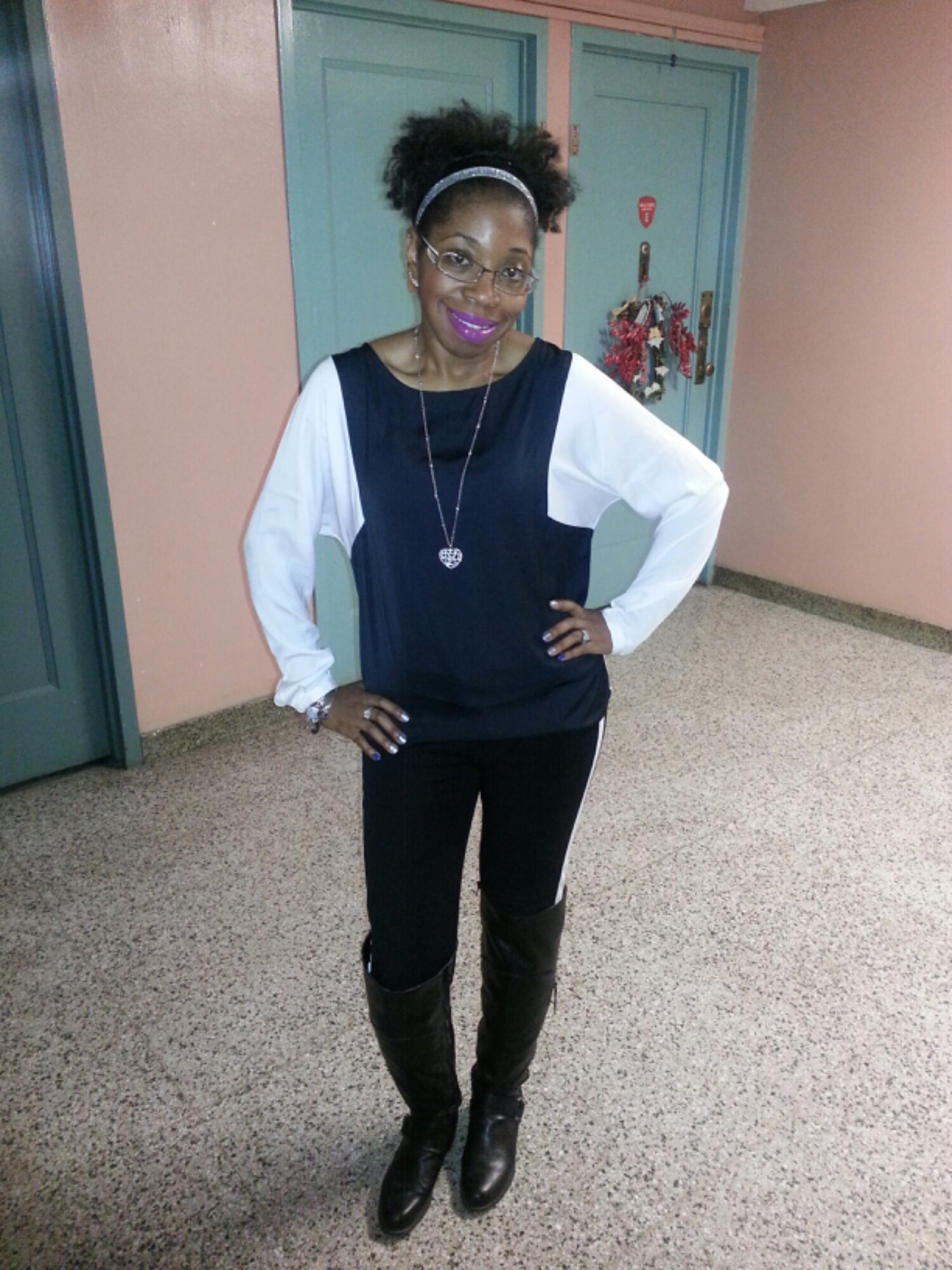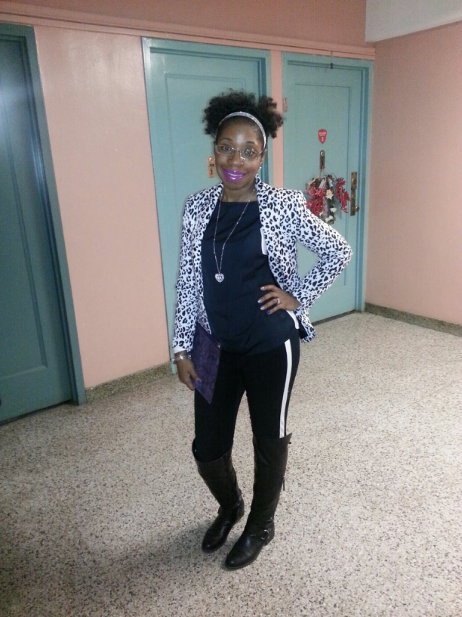 Black and white is my go to look as its classy and elegant. These striped pants from oldnavy are amazing. I wore them with boots but when the weather gets warmer I will pair it with flats or pumps. Can we talk about the blouse, its from target but I thrifted it from goodwill which is a win. This blazer from H&M I love love. The purple clutch was a gift from a friend which made the extra pop I was looking for along with my mac heroine lipstick.