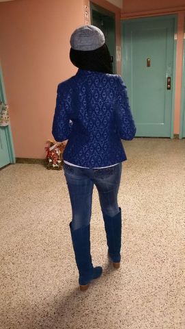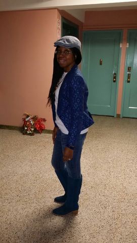 I kept my look simple wearing with some jeans and a white sweater. The sweater had stud detail but you couldn’t tell cause of the photo. I paired it with my blue suede boots from HSN. They have amazing stuff there love it. Paired with a statement necklace and hat made my look cute and casual which is my favorite.