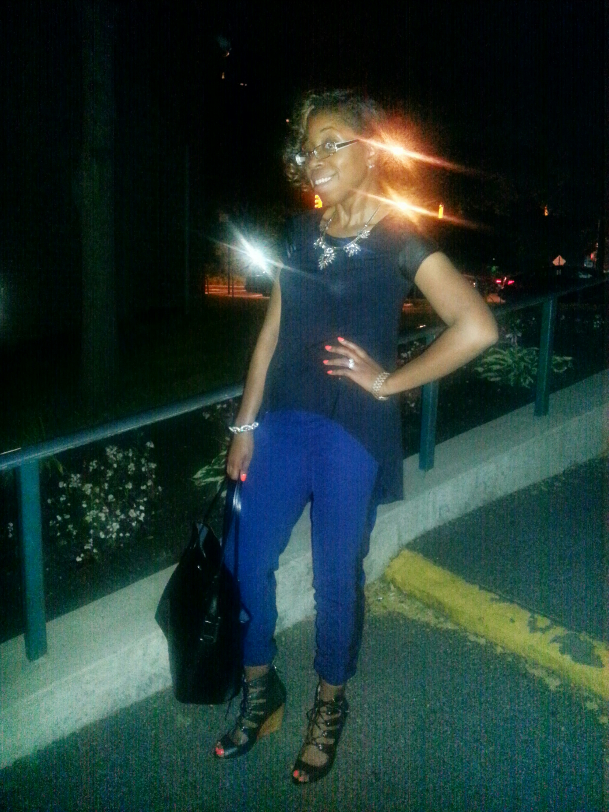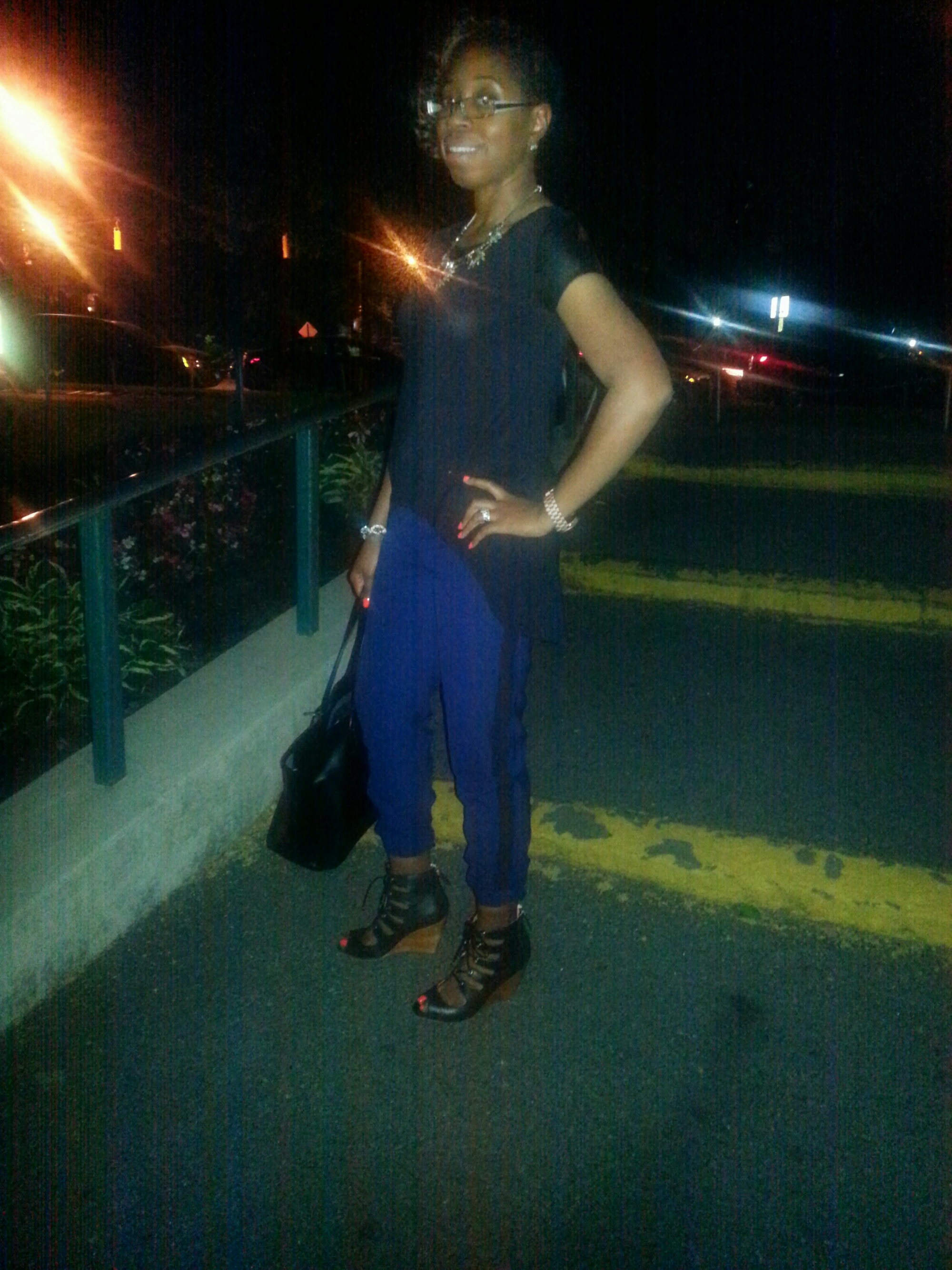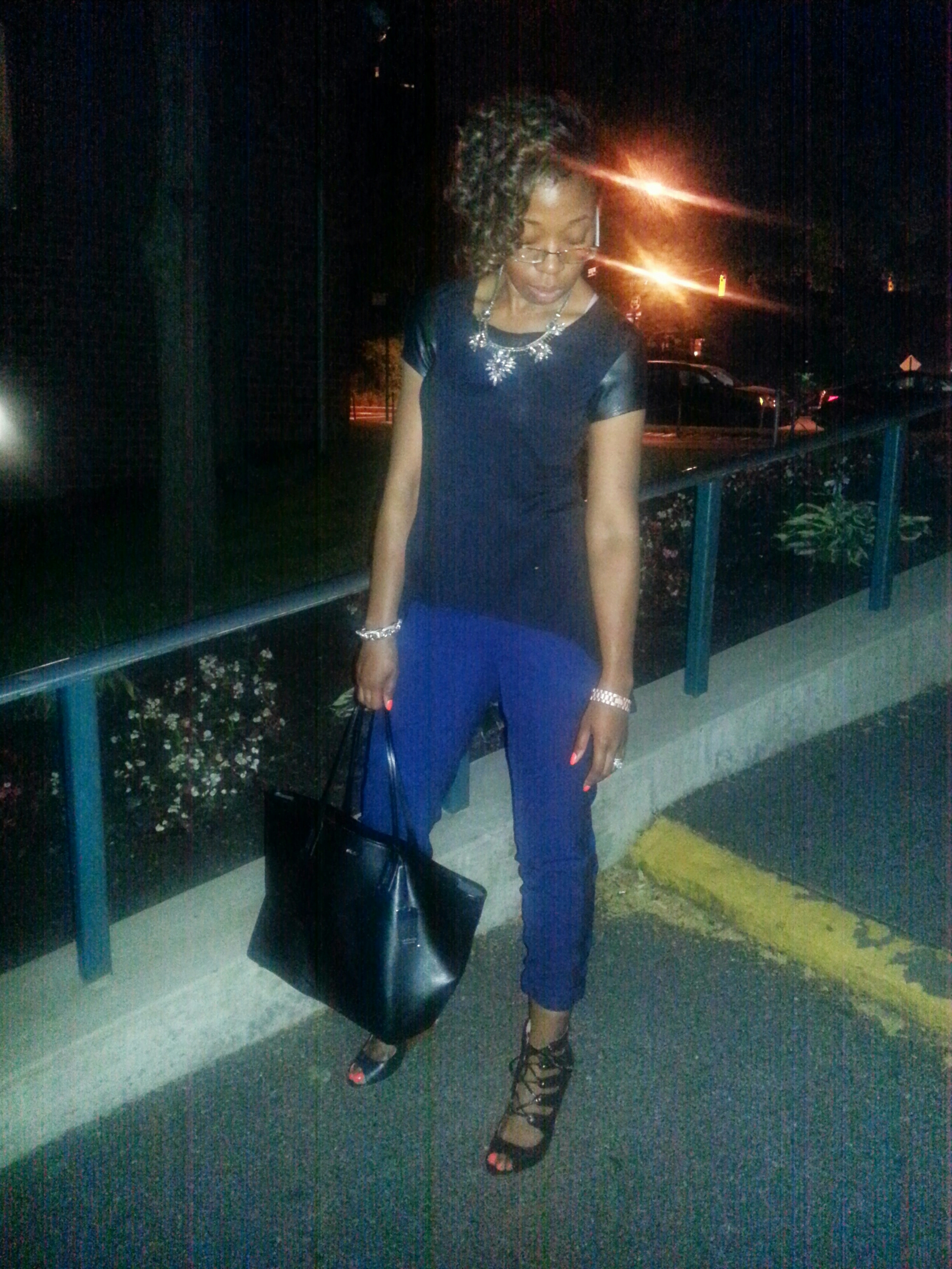 Besides my normal color of purple lol. I love black and blue especially since they go together with almost everything. I also love jogger pants because they can be dresses up and down.