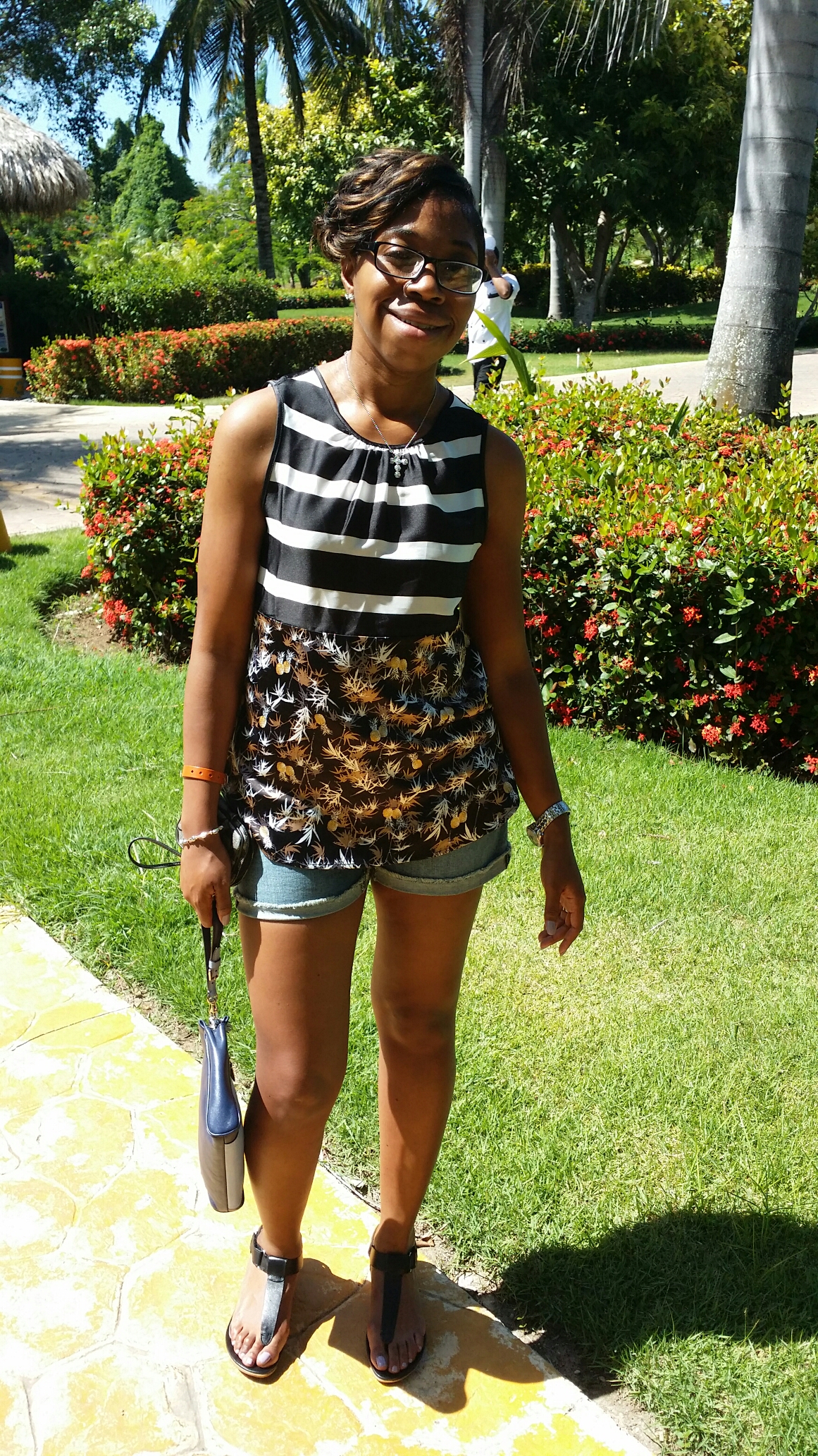 Last month I went away on vacation to Punta Cana in Dominican Republic and so I wanted some different vacation looks. Upon shopping I went to khols where I stumble upon this petersomo for Kohls shirt. What I love about this top was that it had a mixture of pineapples and stripes and it wasn’t all out there. The shirt was slow material and light. I scored it on clearance as well which is a plus. I paired it with some Denim shorts also from khols and my Kenneth Cole sandals I purchased from the outlet.