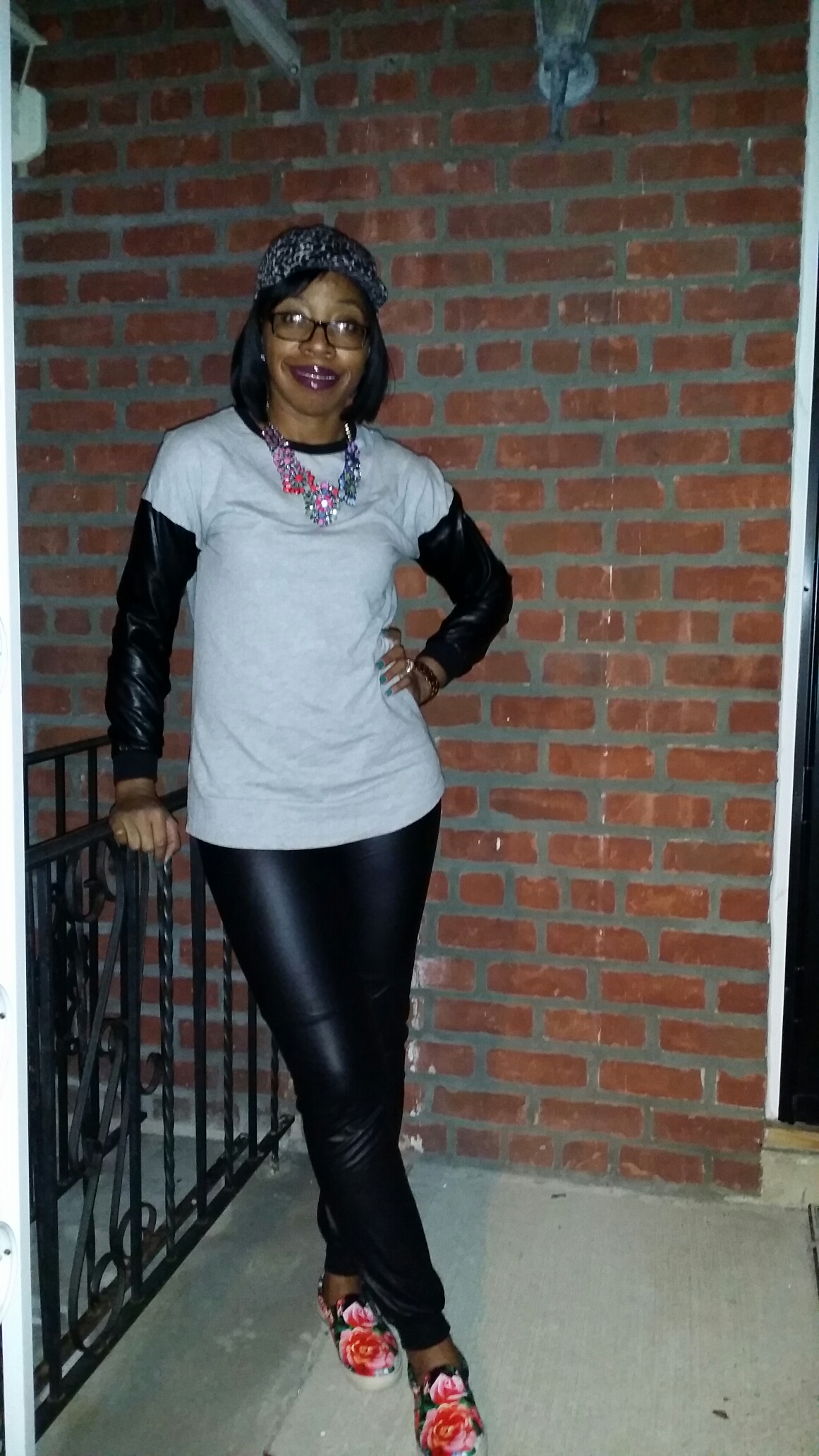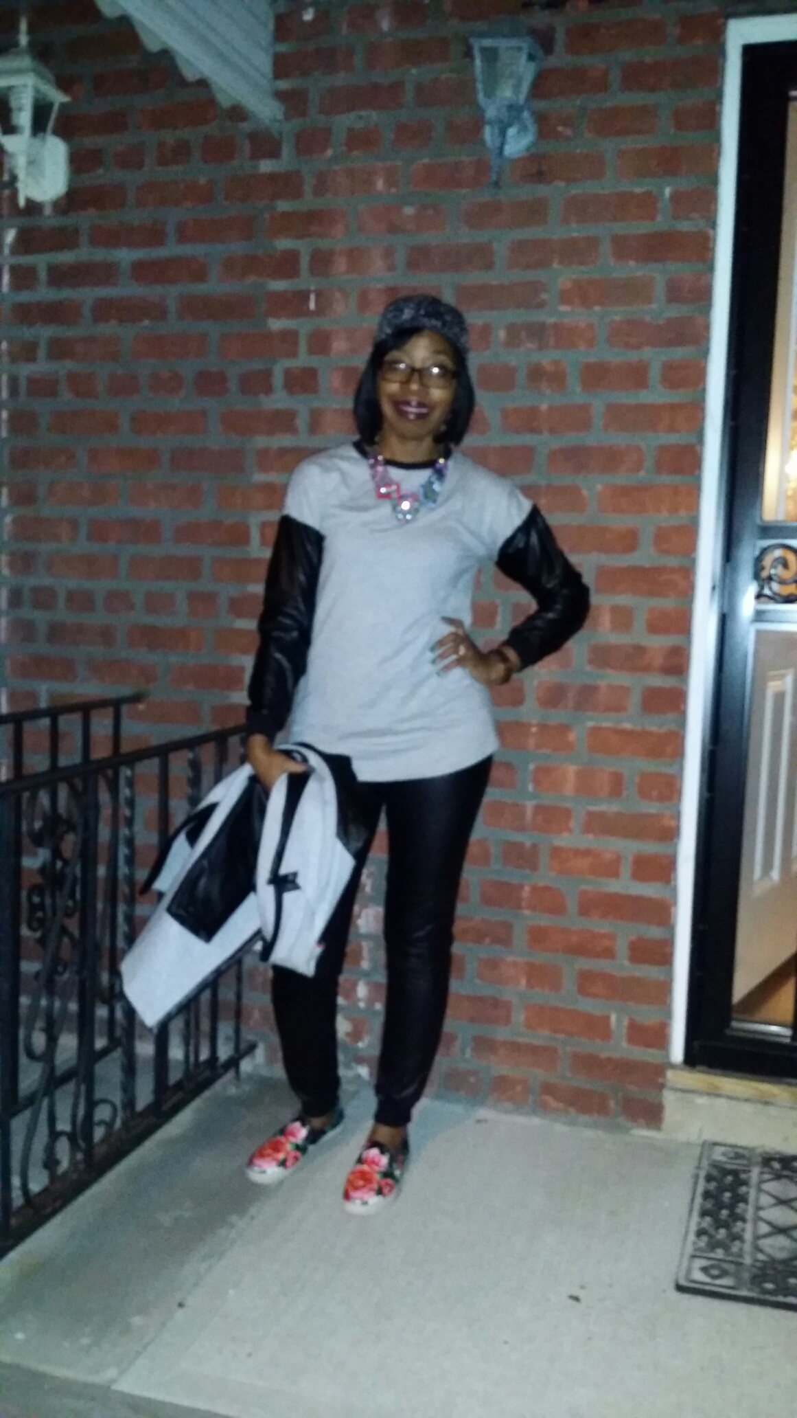 I paired it with these cute black joggers and a statement necklace with a bold lip to top it off. The floral printed sneakers from Steve Madden gave the outfit that casual street look.