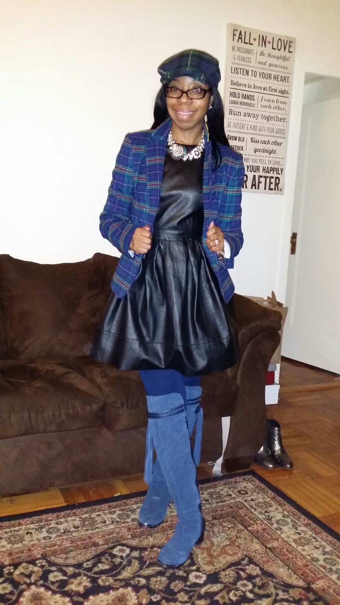 I paired it with this plaid blazer I scored on clearance from target.  My riding boots from June ambrose look great. Statement necklace added the extra touch.