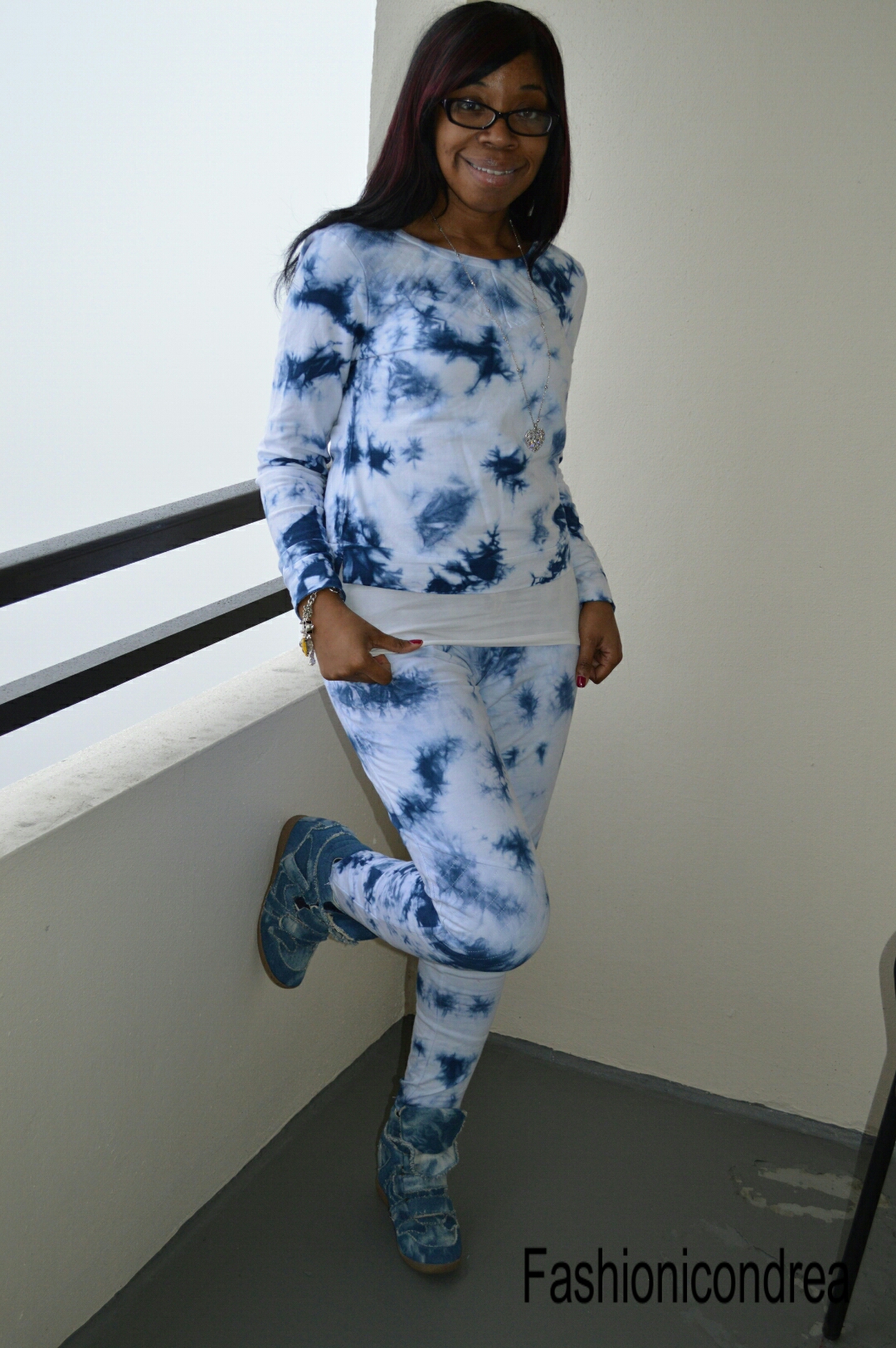 This sweatsuit was from kmart from the Nicki Minaj clothing line. I enjoy the colors as it had the tye dye effect to it. I paired it with my denim wedge sneakers from Steve madden. This look is perfect and can dressed up as well.