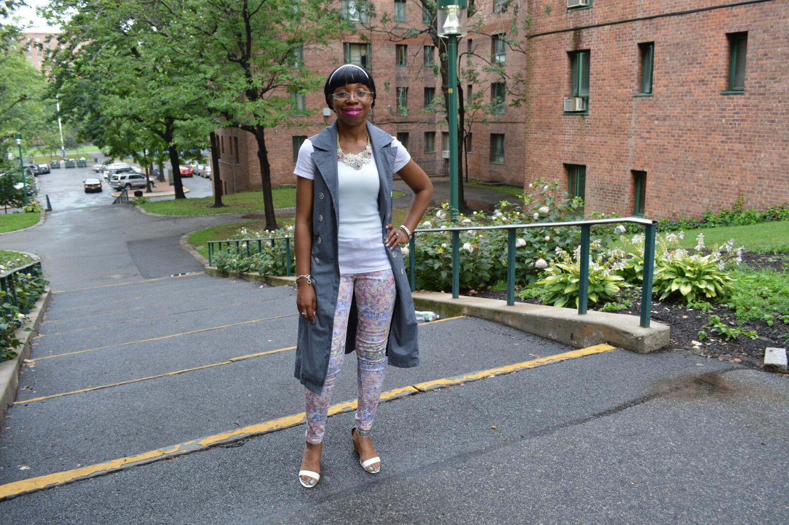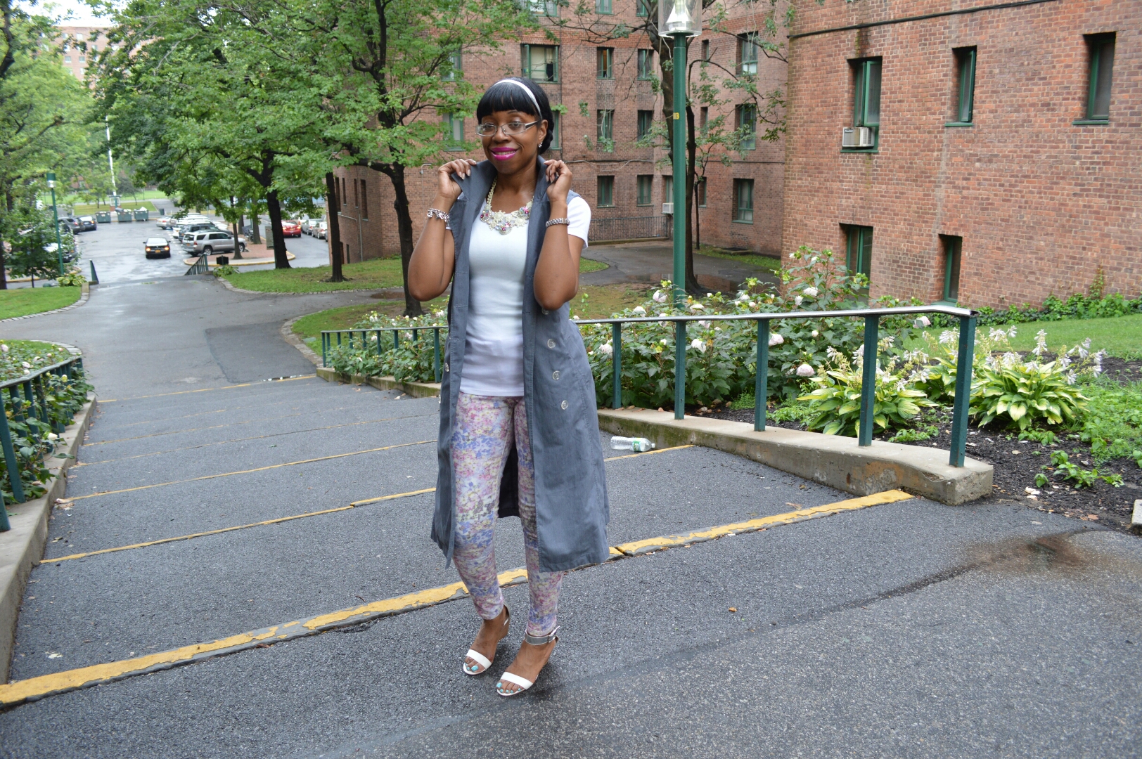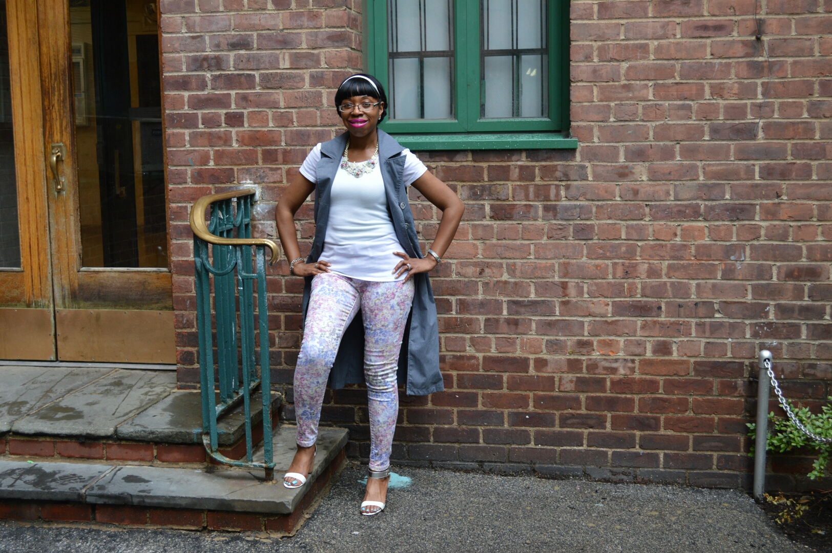 I made the jeans my focal point and paired it with a simple white tee and added a denim sleeveless trench jacket.