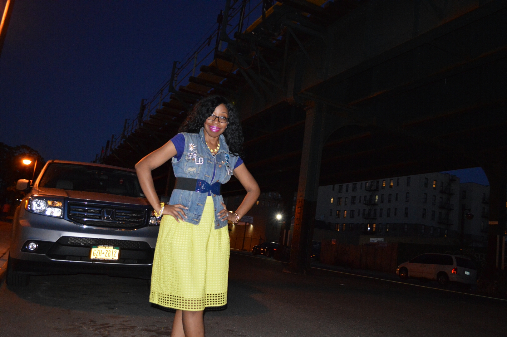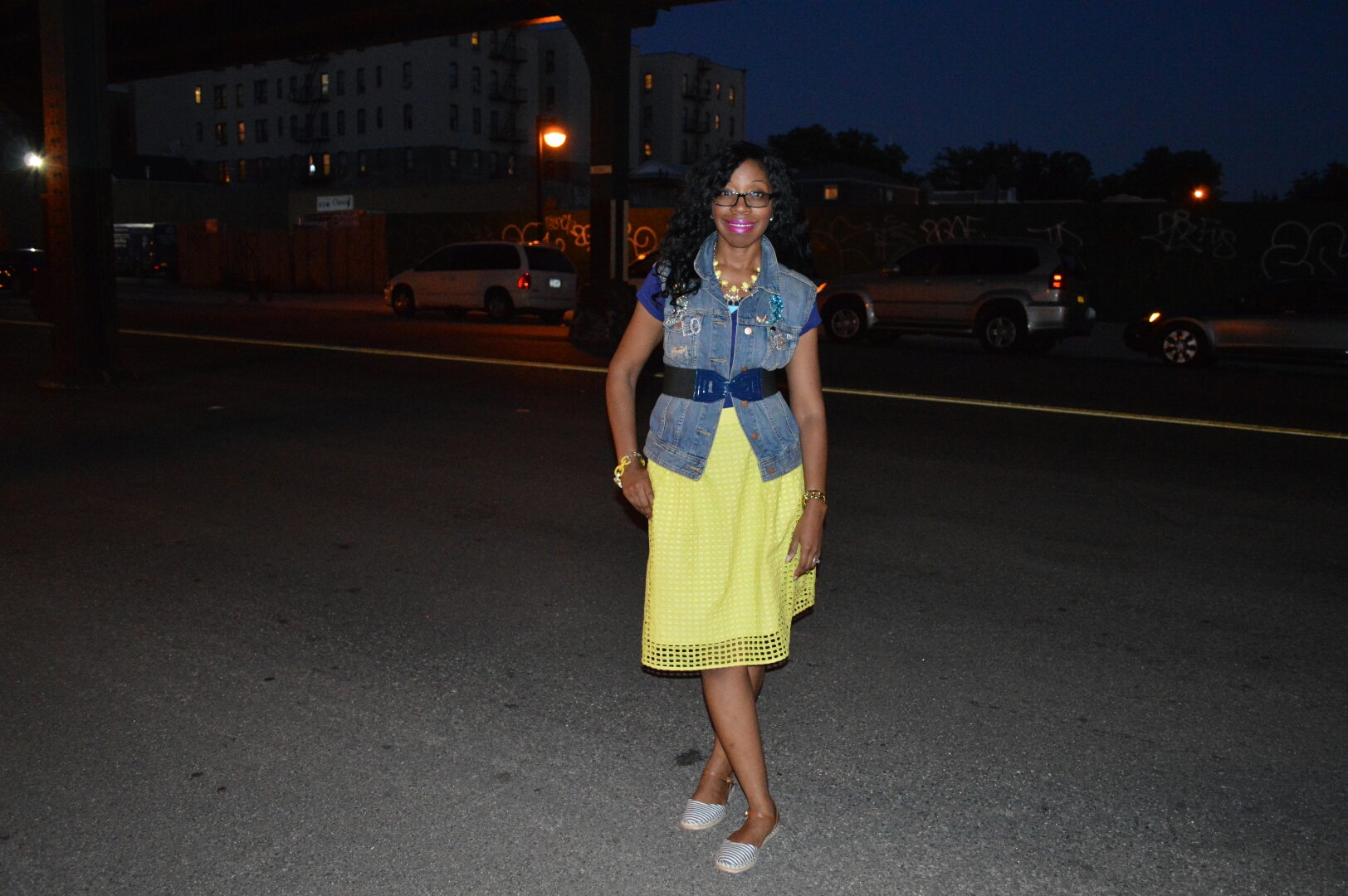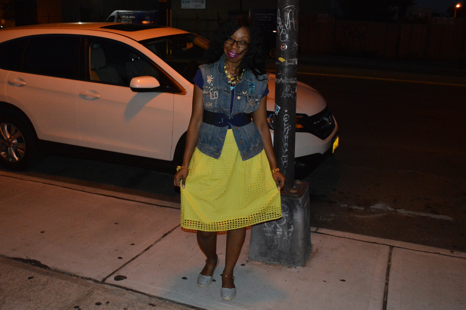 So once the vest was completed I was waiting to wear it with the right outfit. So I paired it with my neon midi skirt,  a tshirt and belted the vest which gave it an extra look.