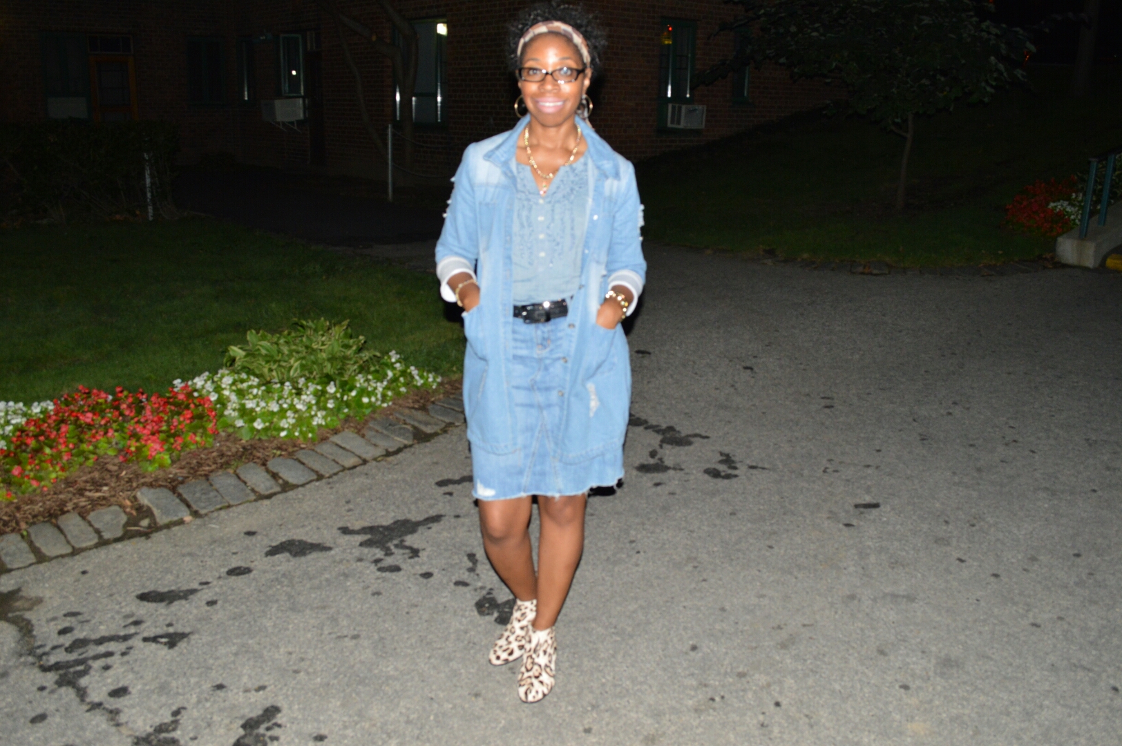For this look I wore denim times three. So I was denim on Denim on Denim lol. I paired the skirt with a denim pill over shirt and then added this distressed oversized jean jacket I thrifted. It’s actually one of my favorite jackets.