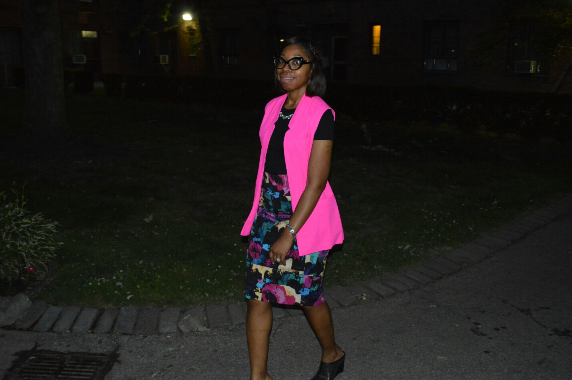 I wanted to share another fun work look that can totally go from day to night. This bright pink almost neon pink vest is so amazing I love how bright it is and I would so pair it with jean and a white tee and pumps.