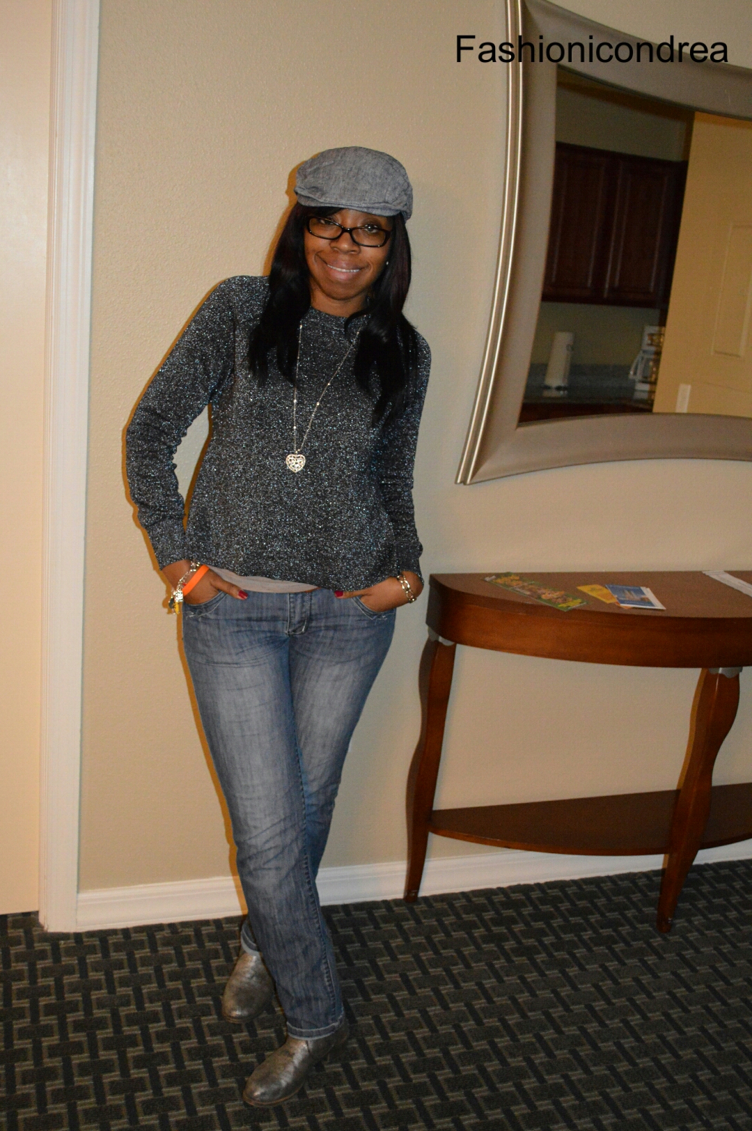 This was a casual look I wore for walking around. This sweater was from j crew which I caught on clearance. What I love is it splits on the side if you want to be bold and show some skin. I wore a tank under mine for the side. I paired it with some Denim jeans and my metallic silver booties.